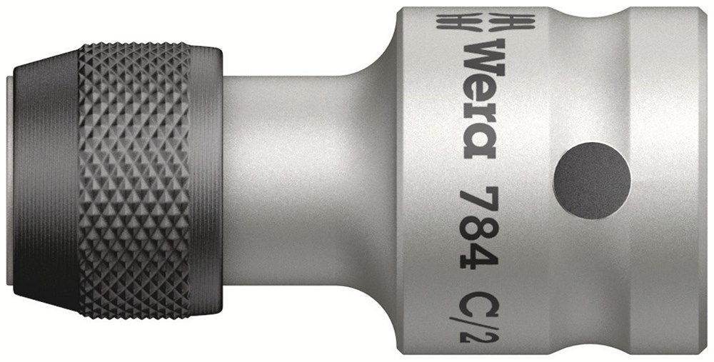 Verbindingselement van vierkant naar zeskant. Met snelwisselfunctie om snel bits te kunnen wisselen. Geschikt voor plaatsing van bits met 5/16" buitenzeskant-aandrijving conform DIN ISO 1173-C 8. Aandrijving: 1/2" binnenvierkant.