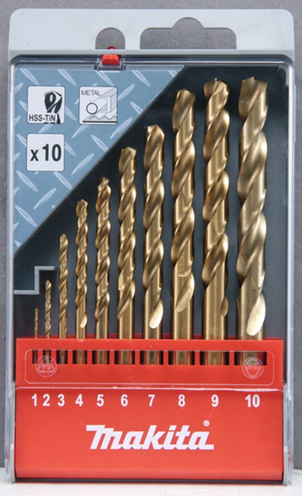 10-delige HSS-TiN metaalborenset volgens DIN338, van 1,0 tot 10,0mm. Tophoek 135°.