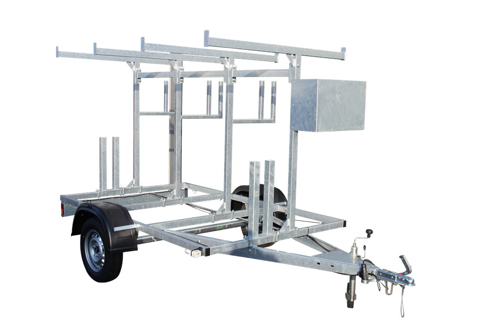 De aanhanger is van hoge kwaliteit en licht in gewicht, eventueel uit te bereiden met een aluminium opslag box of extra steigerwielhouders.