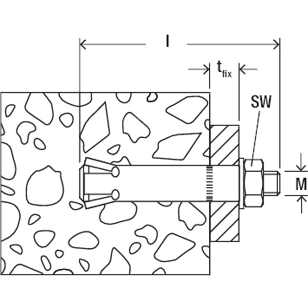 Het fischer Zykon-doorsteekanker FZA-D is een anker van gegalvaniseerd staal. In een arbeidscyclus wordt het achter snijdende boorgat met de speciale boor FZUB geboord. Het achter snijdend anker wordt in de doorsteekmontage geplaatst. Met het montagehulpstuk FZE Plus wordt de spreidhuls over de conus getrokken en vult het achter snijdende boorgat helemaal op. Het fischer Zykon-doorsteekanker FZA-D is ideaal om staalconstructies, leuningen en machines binnenshuis in gescheurd beton te bevestigen.