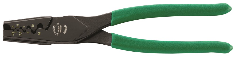 Met halfrond-profiel, voor het betrouwbaar persen van aderhulzen DIN 46228, 8 zeer diepe dwarsgroeven met conische zijden, persen van de huls in één bewerking.