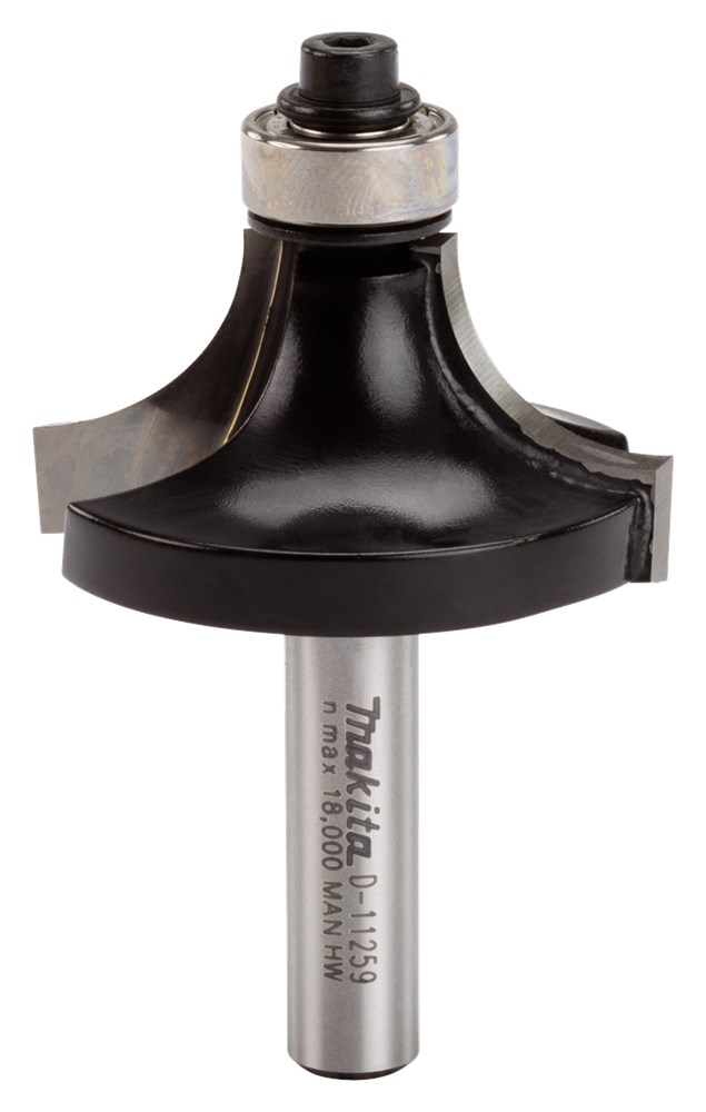 Hardmetalen afrondfrees met kogellager. Geschikt voor het afronden van massief hout, lijmhoudende houtsoorten en kunststoffen. Passend op Makita Model: DRT50ZJX2, DRT50ZJX9, M3600, M3601, RP0900K, RP0910, RP1110C, RP1800FX, RP2300FCX, RP2300FCX2, RT0700C, RT0700CX3, RT0700CX3J