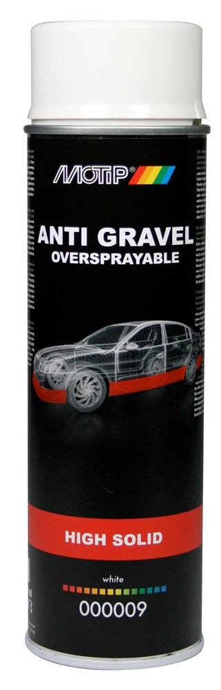 Beschermingsmiddel voor de onderkant en zichtbare carrosserie onderdelen van voertuigen. Anti steenslag is overspuitbaar met alle verfsystemen en heeft een uitstekende corrosiewerende werking. Anti steenslag is bestand tegen weersinvloeden en zwakke zuren en basen, is geluiddempend en is blijvend elastisch. MoTip Anti Steenslag High Solid is verkrijgbaar in drie kleuren: zwart, grijs en wit, in een spuitbus van 500 ml en een onderschroefbus, voor verwerking met een UBC spuitpistool, van 1.000 ml.