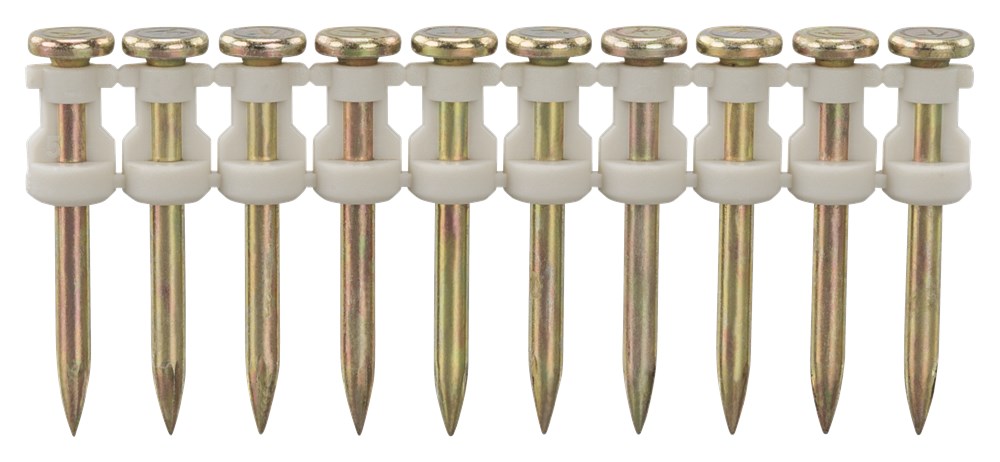 Betonnagels voor het bevestigen van metal stud en hout op beton voorzien van gegalvaniseerde coating. 1 gaspatroon meegeleverd. 10 nagels per strip. Het is ook mogelijk om de nagels op staal te bevestigen . Aanbevolen penetratie diepte per betonklasse: C16/20 25-28 mm C20/25 20-22 mm C25/30 15-20 mm C30/37 15-18 mm Aanbevolen penetratie diepte per staalsterkte: 350 N/mm2 6,5 mm Prijzen zijn aan verandering onderhevig. Passend op Makita Model: GN420CLSE, GN420CLZK