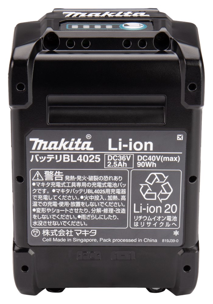 De machines, accu’s en oplader van het XGT-platform zijn standaard voorzien van elektronica, waardoor deze met elkaar kunnen communiceren. De oplader geeft de meest geoptimaliseerde oplading aan de accu afhankelijk van de status van de accu. Ook de machine reageert direct op de status van de accu. Afhankelijk van de status van de accu wordt de stroomtoevoer naar de machine geoptimaliseerd. Daarnaast is de accu gebouwd om zware omgevingsomstandigheden te weerstaan, zoals water en stof. Ze hebben een robuuste constructie, zijn beschermd tegen stof en ze hebben een spatwaterbestendig ontwerp. Kortom, een accu waar je op kunt bouwen. XGT 40 V Max Li-ion accu met een tankinhoud van 2,5 Ah. De accu is voorzien van een led indicator die de tankinhoud van de accu weergeeft. In combinatie met de DC40RA snellader is de accu in slechts 28 minuten weer volledig geladen. Passend op Makita Model: DF001GD201 , DF002GD201 , HP001GD201 , HP002GD201 , JR001GZ , TD001GD201 , TD001GZ , TW001GD201 , TW004GD201 , TW005GD201 , UH004GD201 , UH005GD201 , UH006GD201 , UH008GD201 , UH009GD201