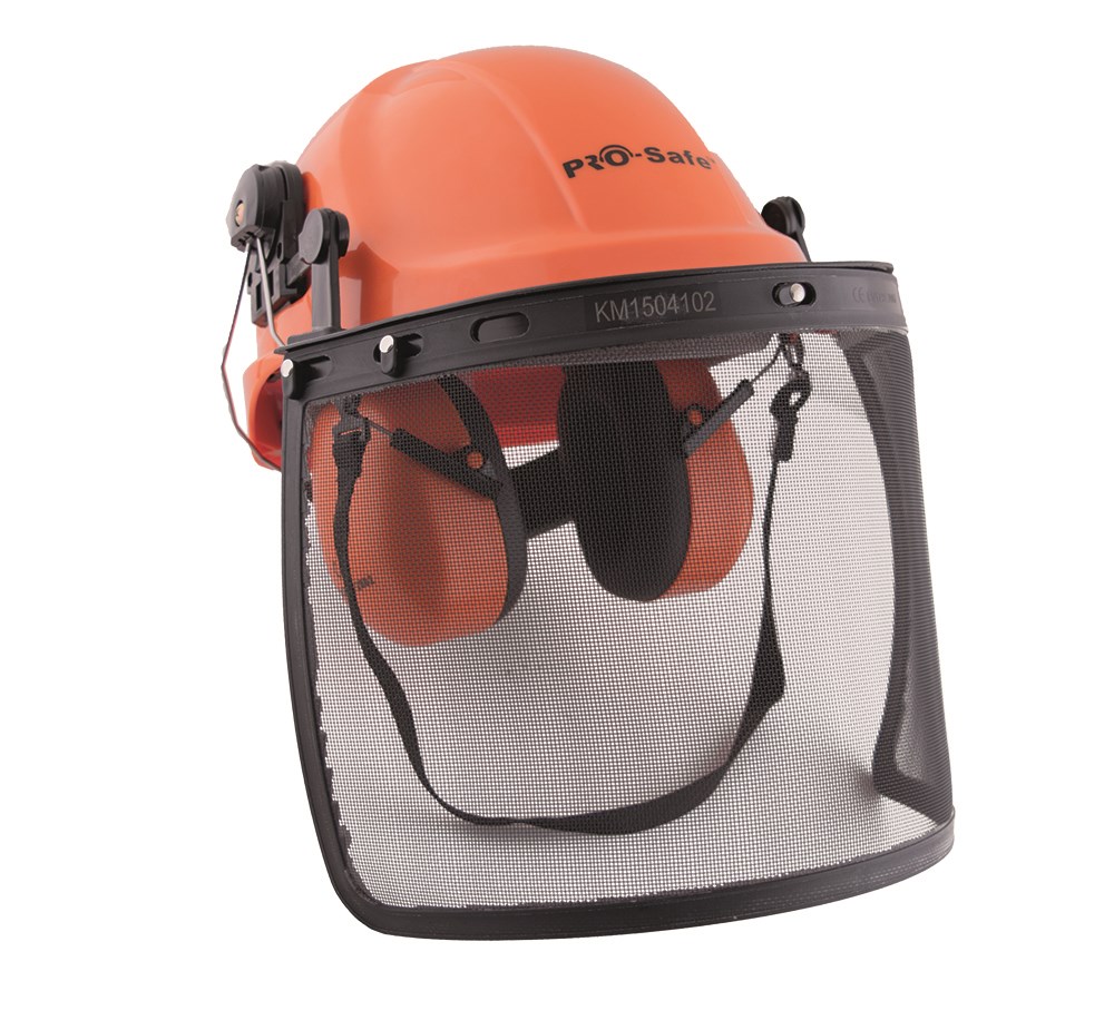 Helm "FOREST" met oorkappen en stalen gelaatsscherm