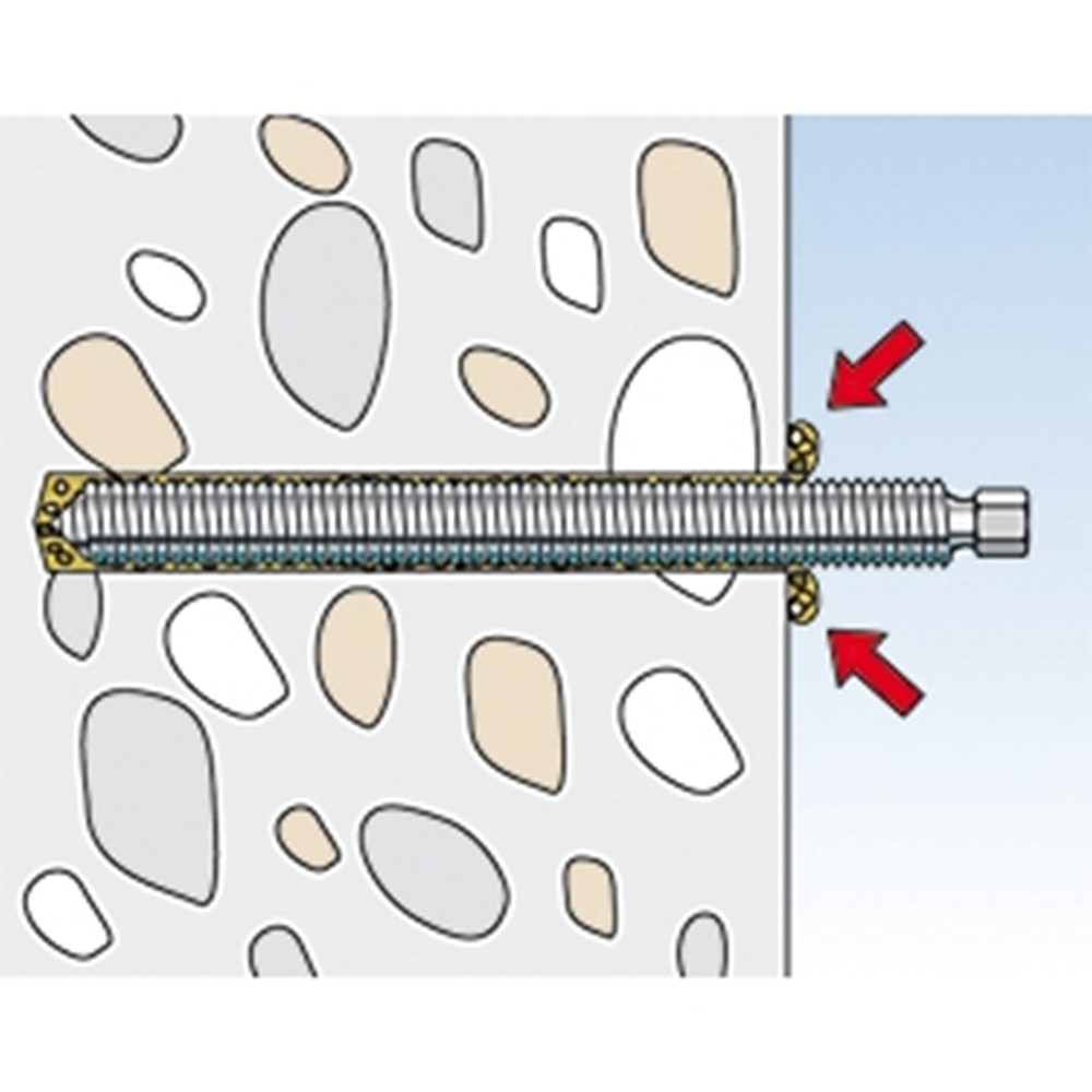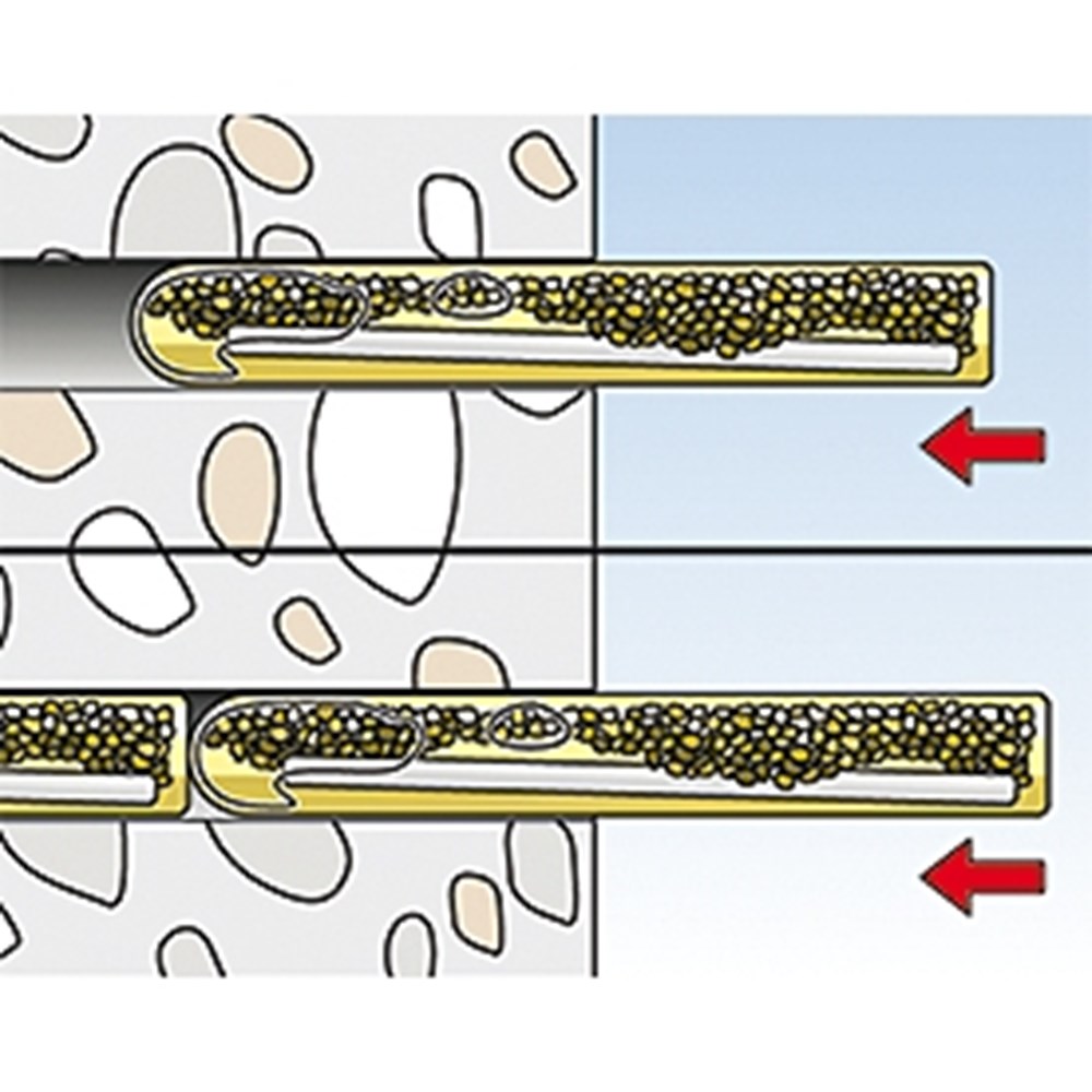 De fischer Mortelpatroon is een systeemcomponent van het fischer Reactie-anker R voor bevestiging in ongescheurd beton. De 2-componenten mortelpatroon bevat styreenvrije, snel binden vinylesterhars en een harder. De mortelpatroon kan in combinatie met de fischer Draadstang RG M, van gegalvaniseerd staal, roestvast staal en van extreem corrosiebestendig staal worden gebruikt. De fischer Draadstang wordt met het montagehulpstuk voor chemische ankers met een boorhamer draaiend-tikkend aangebracht. Tijdens het plaatsen wordt de mortelpatroon kapotgemaakt, gemengd en de mortelmassa geactiveerd. Met behulp van het fischer Reactie-anker worden binnen- en buitenshuis staal- en houtconstructies, machines of trappen bevestigd.