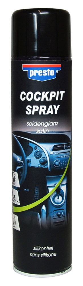 Spray met uitstekende reinigende eigenschappen, om het dashboard en andere kunststof onderdelen in de auto te reinigen, beschermen en verfraaien. presto Cockpit Spray werkt langdurig, antistatisch, water- en vuilafstotend, en verlaagt dus je onderhoudskosten. Vooral uitstekend om te reinigen, superschuim op waterbasis dat zelfs op ramen geen residu achterlaat.