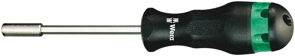 Hoogwaardige Kombi-schroevendraaier met krachtige permanente magneet die de bits muurvast in het gereedschap houdt. Inclusief TORX® elementen in draaibare houder waarin de bits kunnen worden opgeborgen en getransporteerd - de compacte uitvoering van een zesdelige schroevendraaierset! Kraftform Plus-handgreep om prettig en ergonomisch verantwoord te kunnen werken en blaren en schuurplekken te voorkomen. Harde gripzones voor een hoge werksnelheid, zachte gripzones voor een hoge draaimomentoverdracht. Geschikt voor plaatsing van bits met 1/4" buitenzeskant-aandrijving conform DIN ISO 1173-C 6,3.