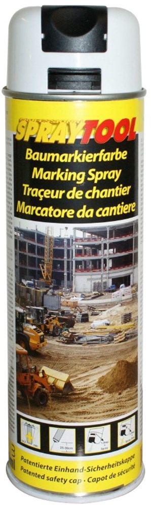 Markeringspray voor bouwplaatsen, civiele techniek, straten en tunnels.