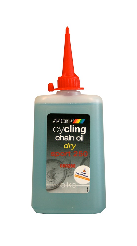 Smeermiddel voor het behandelen van kettingen en tandwielen van fietsen. Chain Oil Sport heeft een lage wrijvingscoëfficiënt voor minimale weerstand met behoud van de uitstekende smerende werking, ook bij zware belasting. Speciaal ontwikkeld voor kettingen en tandwielen van racefietsen, crossbikes en mountainbikes. Bij zware condities adviseren wij MoTip Cycling Chain Oil Ultra te gebruiken. Chain Oil Sport is waterafstotend en bestand tegen weersinvloeden. MoTip Chain Oil Sport voorkomt slijtage en vermindert de vuilaanhechting.
