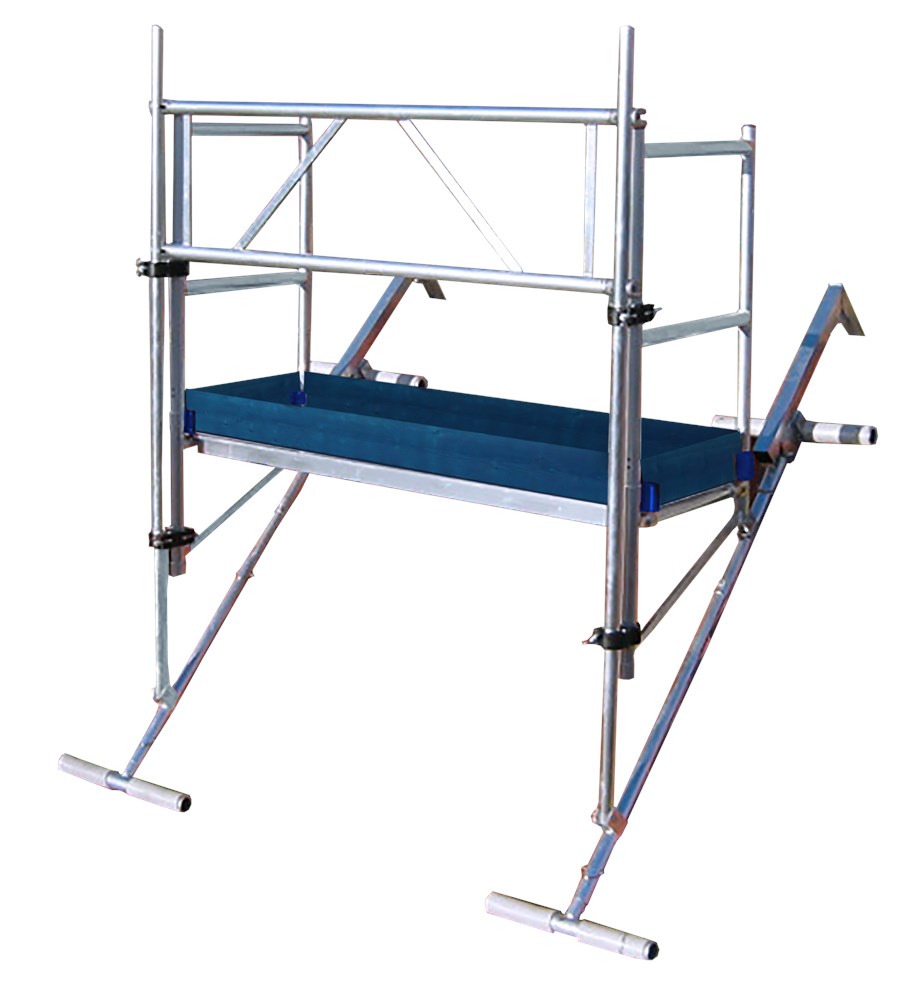 De voetligger en vloerdrager kunnen direct aan het nokstuk worden gemonteerd en kan worden uitgebouwd aan de top en middenligger, waardoor u zelf de werkhoogte kan bepalen. De vloerdrager kan ook op meerdere niveau’s tegelijk worden gebruikt.