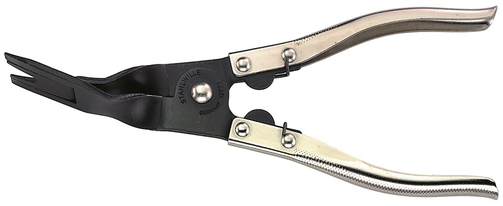 Voor het verwijderen van bevestigingsdoppen van deurbekleding, sierlijsten, schokbrekerrubbers enz. Scharnier en bek van gehard blikstaal, greep van gestanst blik.