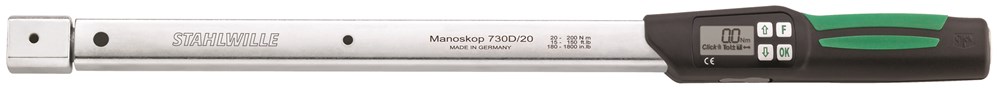 Voelbaar en akoestische signaal, inwendig vierkant voor verwisselbare insteekgereedschappen, QuickRelease-veiligheidsvergrendeling, snelle instelling via praktische tiptoetsen, automatisch het juiste aanhaalmoment na ingave van een afwijkende steekmaat, overbelastingsbeveiliging d.m.v. akoestisch en optisch waarschuwingssignaal, geen per ongeluk verstellen door automatische toetsenblokkering, draaiingshoekmeting zonder referentiearm m.b.v. de draaiingshoekmodule nr. 7395-1, weergavefunctie ook bij linksomgebruik, meeteenheden: Nm, ft.lb, in.lb, verschillende tolerantiegrenzen per schroefsituatie instelbaar, optische beoordeling van de schroefsituatie door groene en rode weergave op het display, extra beveiliging van de voorinstellingen (functiemodus, aanhaal- resp. instelwaarde, meeteenheid, tolerantiewaarde, opslaan, afwijkende steekmaat) d.m.v. PIN-code, opslag tot 7.500 meetwaarden, USB-poort, automatische herinnering aan de volgende kalibratietermijn, kalibratie met de perfectControl kalibratiebank nr. 7794 of de kalibreerinstallatie nr. 7706, 2-componentengreep met handvriendelijke, groene zachte zone (resistent tegen olie, vetten, brandstoffen, remvloeistof en skydrol), met certificaat, in stevige kunststoffen koffer (gr. 40-100 In metalen kist), gepatenteerd, levering met 2 mignon-batteriijen 1,5 V. Er kunnen ook mignon-NiMH-Accu's AA/LR6, 1,2 V, worden gebruikt, weergave-afwijking ± 2 %, ± 1 digit