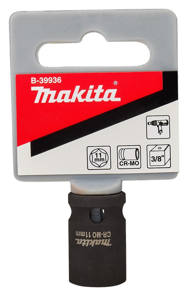 Makita krachtdoppen met 3/8" vervaardigd van Chroom Molybdeen. Door het speciale productieproces wordt een hoge materiaaldichtheid verkregen waardoor de doppen uiterst taai zijn. Hierdoor wordt een lange levensduur en nauwkeurige passing gewaarborgd. De krachtdoppen worden zonder pen en ring uitgeleverd. Voor de 3/8" aansluiting heeft Makita ook geen pen en ring verkrijgbaar. Niet geschikt in combinatie met momentsleutels.