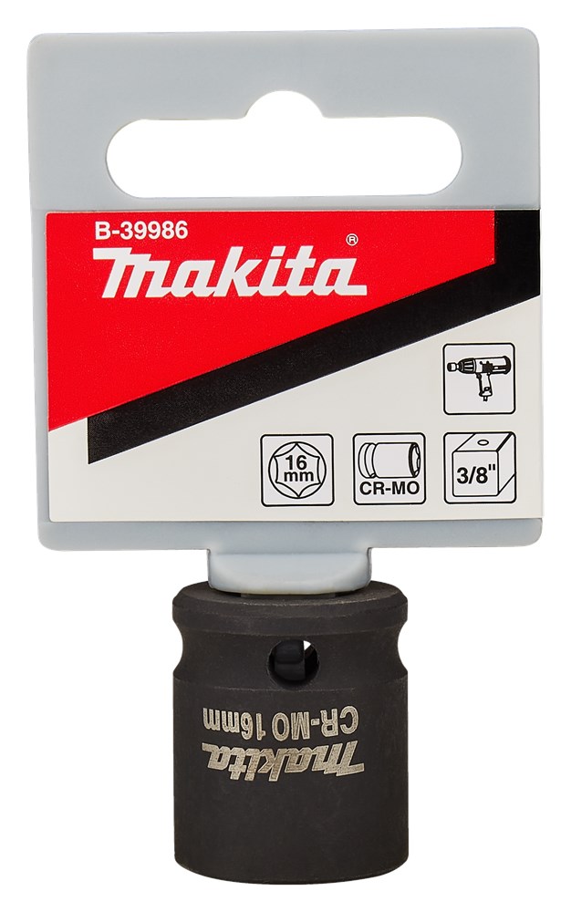 Makita krachtdoppen met 3/8" vervaardigd van Chroom Molybdeen. Door het speciale productieproces wordt een hoge materiaaldichtheid verkregen waardoor de doppen uiterst taai zijn. Hierdoor wordt een lange levensduur en nauwkeurige passing gewaarborgd. De krachtdoppen worden zonder pen en ring uitgeleverd. Voor de 3/8" aansluiting heeft Makita ook geen pen en ring verkrijgbaar. Niet geschikt in combinatie met momentsleutels.