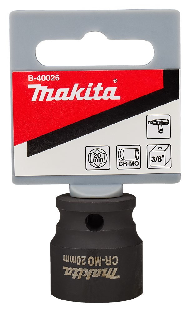 Makita krachtdoppen met 3/8" vervaardigd van Chroom Molybdeen. Door het speciale productieproces wordt een hoge materiaaldichtheid verkregen waardoor de doppen uiterst taai zijn. Hierdoor wordt een lange levensduur en nauwkeurige passing gewaarborgd. De krachtdoppen worden zonder pen en ring uitgeleverd. Voor de 3/8" aansluiting heeft Makita ook geen pen en ring verkrijgbaar. Niet geschikt in combinatie met momentsleutels.