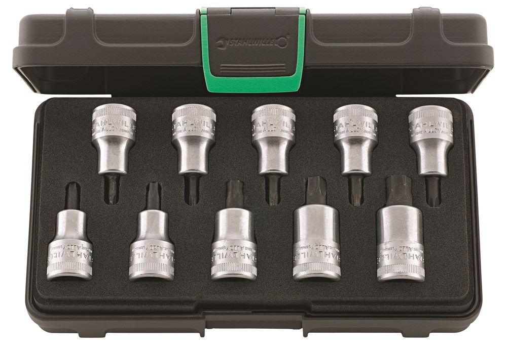 In kunststoffen doos, 10-delig, voor inwendige TORX®-bouten, inhoud: 10 doppen nr. 54TX: T20; T25; T27; T30; T40 (2x); T45; T50; T55; T60.
