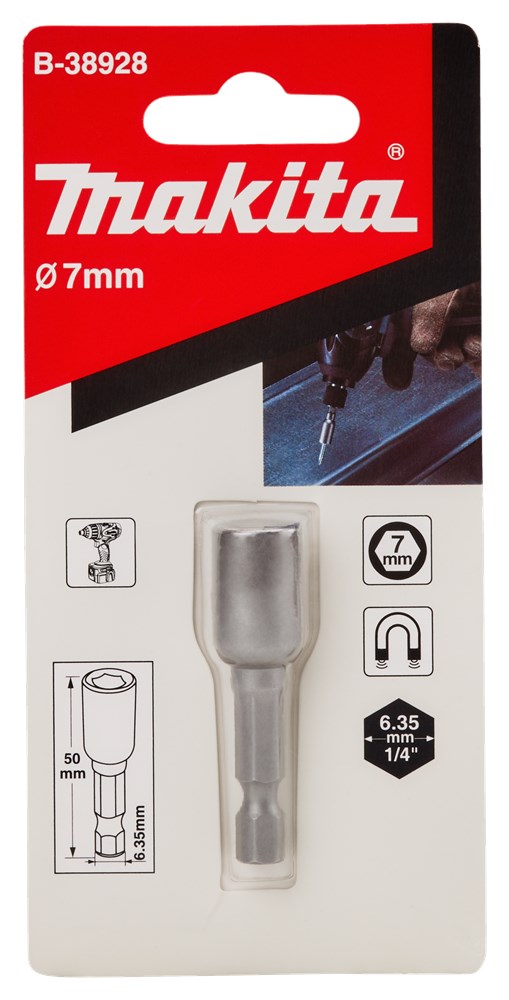 Dopsleutels met 1/4" zeskant vorm E stift volgens DIN3126. Met permanente magneet. Deze dopsleutels zijn specifiek ontwikkeld voor de schroevendraaiers voor zelfborende bouten. Passend op makita model: 6802BV, DFS251, FS2500.