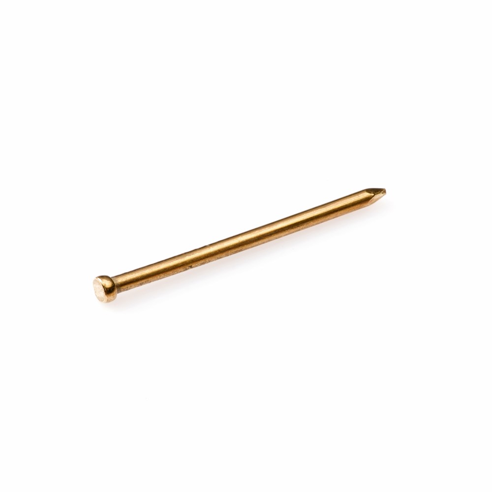Messing draadnagels worden vaak gebruikt voor het vastzetten van lijstjes of scharnieren. De verloren kop verzinkt mooi in het hout.