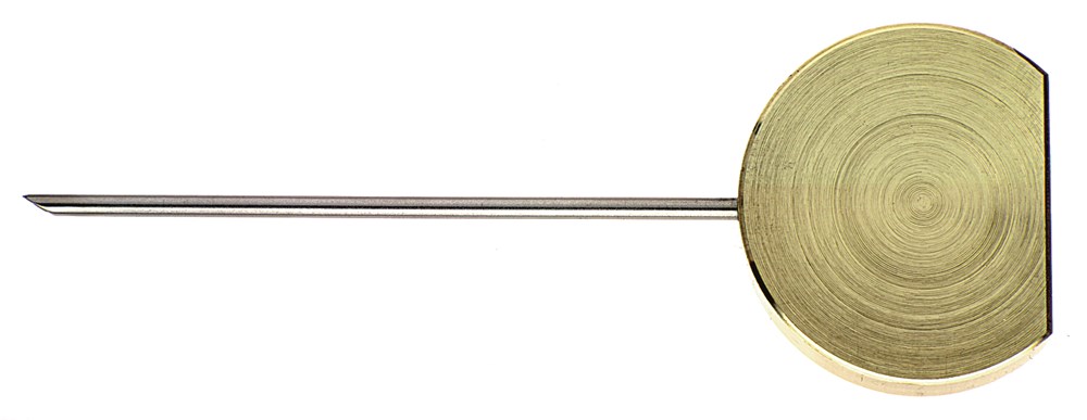 Voor het doortrekken van de snijdraad door het geharde afdichtrubber; 2,5 mm stalen buisje, met greep van messing.
