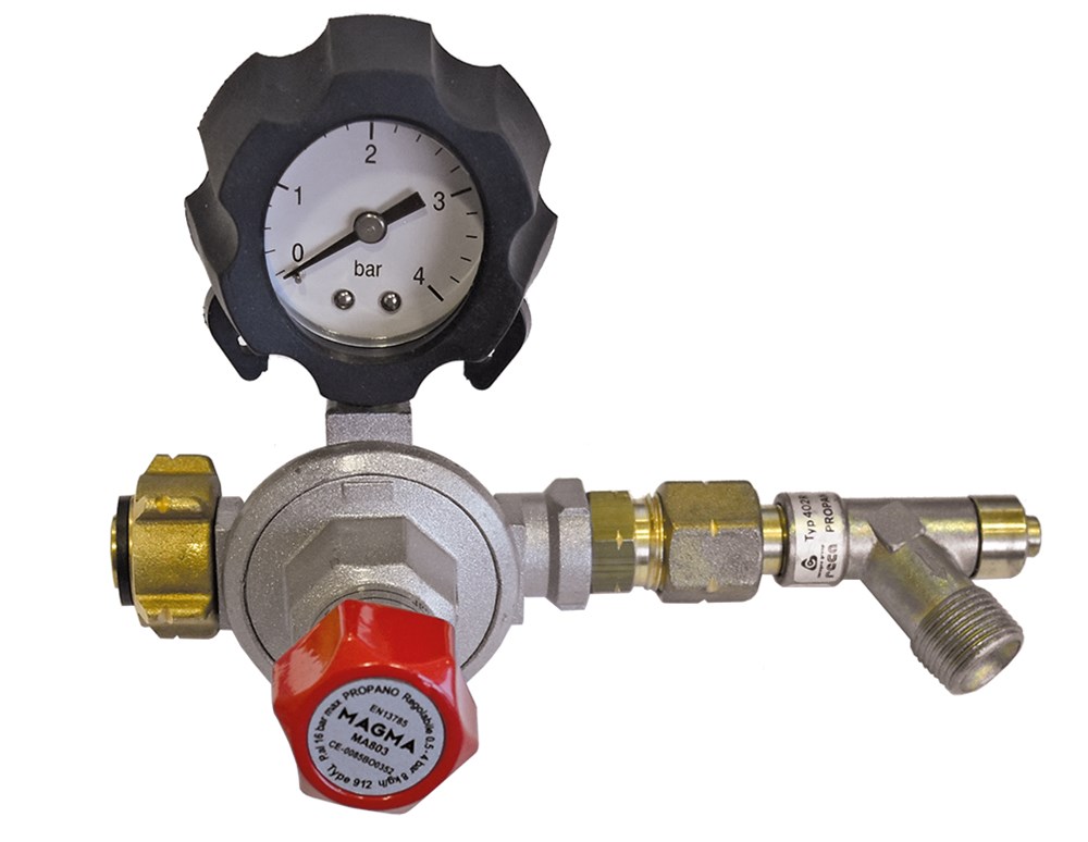 Drukregelaar met instelbare druk met slangbreukventiel en manometer