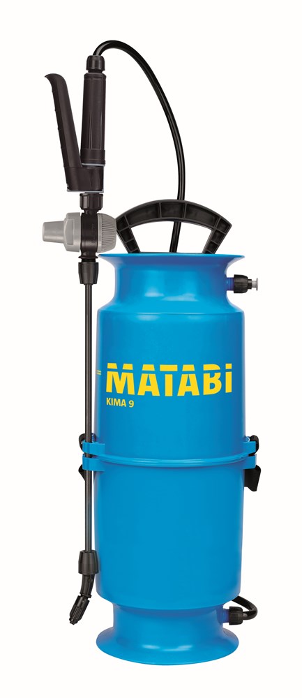 Matabi drukspuit met een capaciteit van 6 liter en voorzien van een drukregelaar, adapter voor accessoires, filter handvat met NBR afdichtingen en rvs veer, glasvezel lans en FPM pomp afdichting.