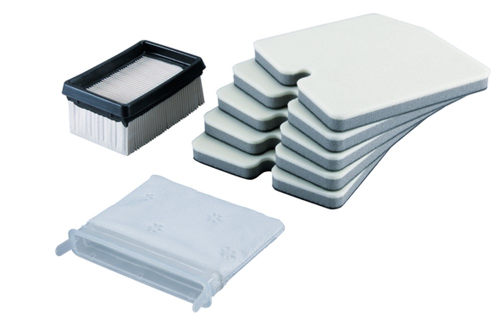 Filterset voor motordoorslijper bestaande uit 5x voorfilter, 1x luchtfilter en 1x linnen stofzak.