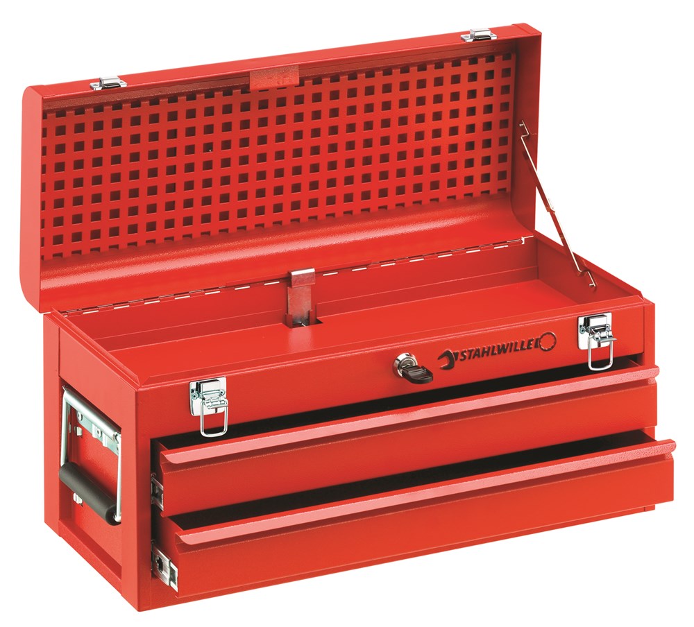 Met 2 schuifladen, een vak onder het deksel (elk 449 x 55 x 185 mm), veiligheidsslot en met kunststof beklede greep bovenop het deksel. Brede, geveerde, met kunststof beklede grepen aan de zijkant. Hoogwaardig, robuust, volledig uittrekbaar glijrailsysteem. De schuifladen zijn eenvoudig uitneembaar. Individuele indeling in het deksel met veerklemmen nr. 8050.