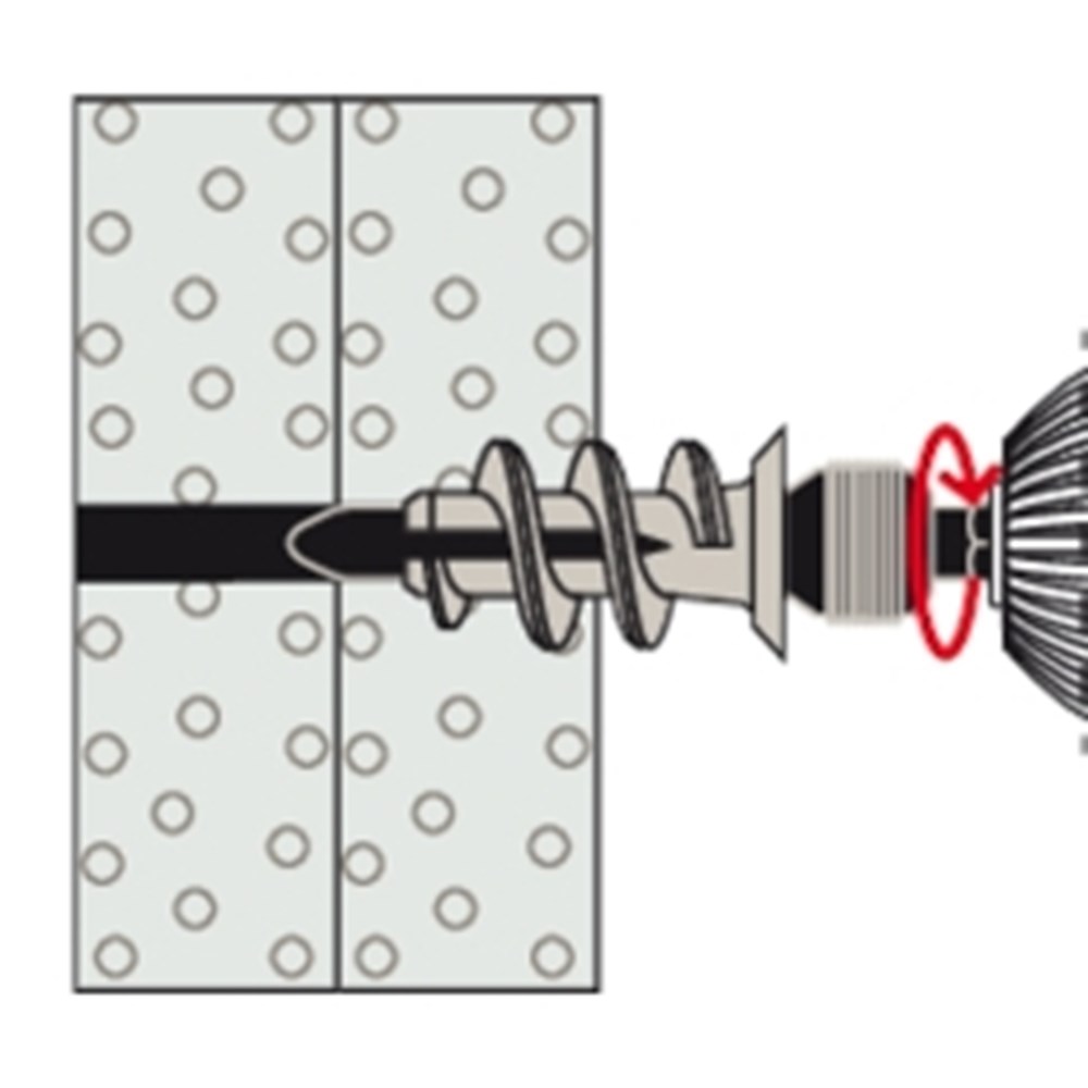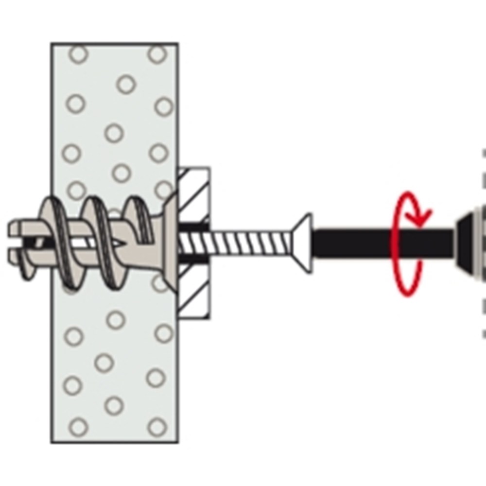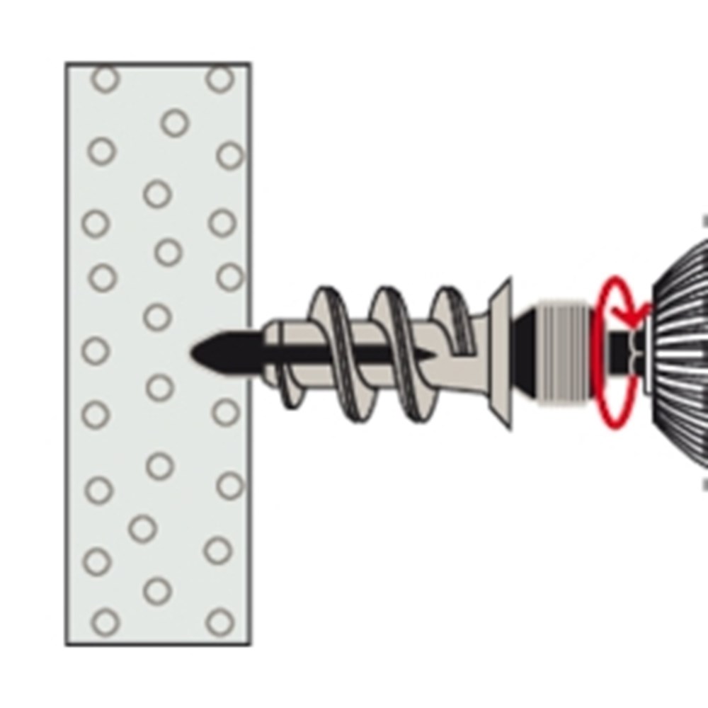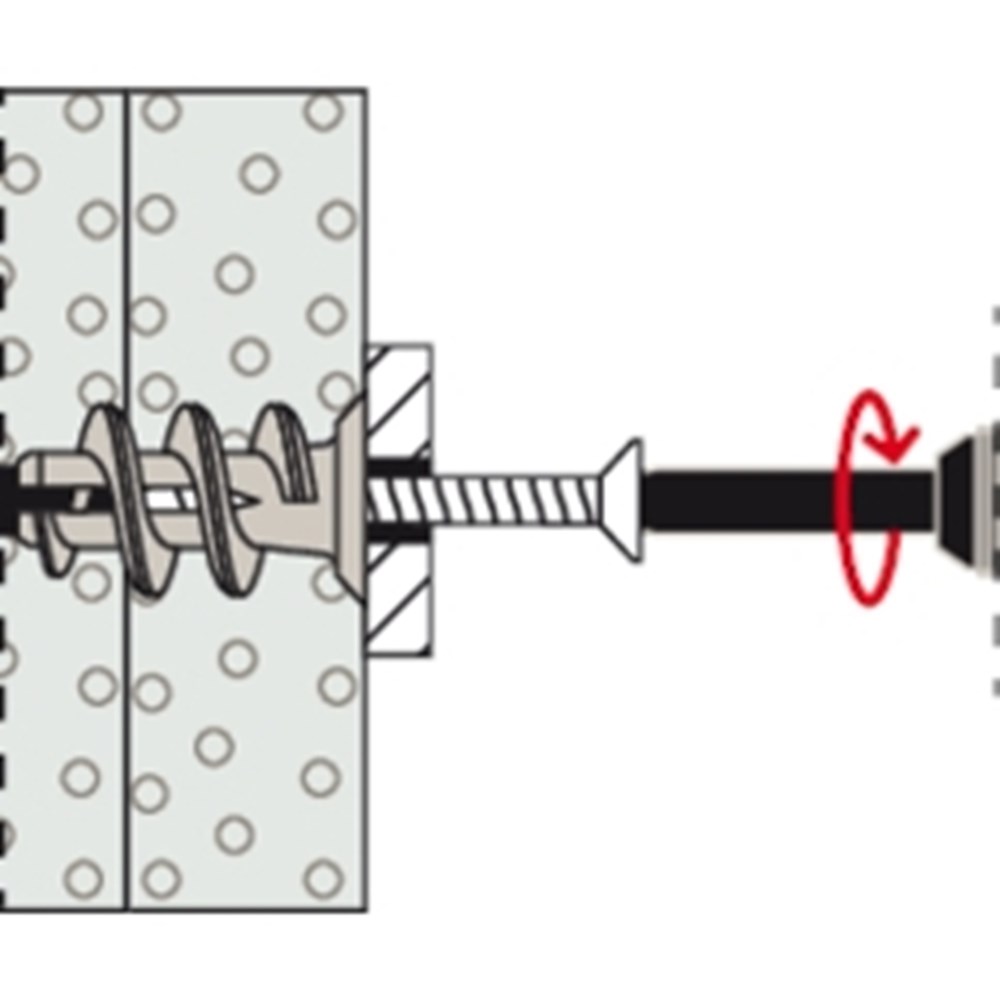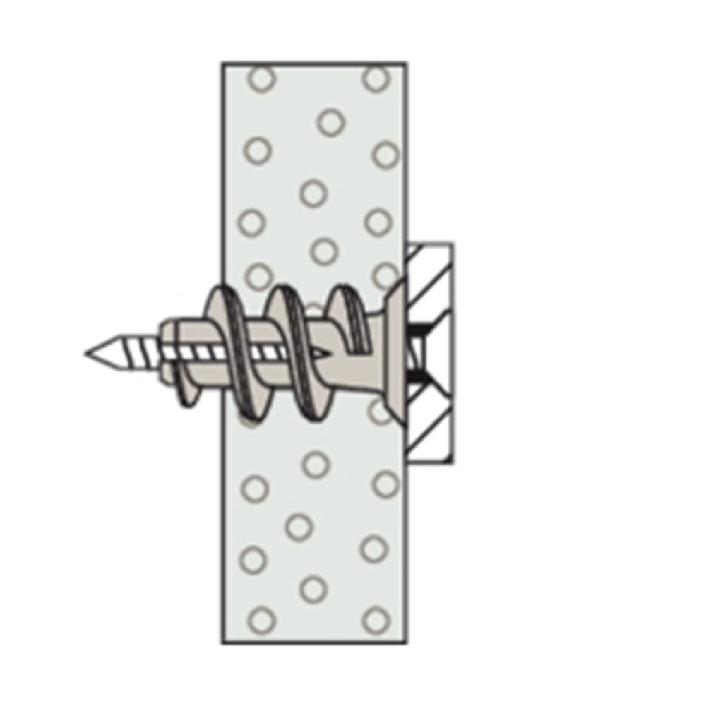De fischer Gipsplaatplug GK S wordt gemaakt van kwalitatief hoogwaardig nylon. De plug wordt in de voorsteekmontage met het bijgevoegde montagehulpstuk en een accuschroevendraaier lijnend met het oppervlak in de gipsplaten gedraaid. Tot een plaatdikte van 15 mm hoeft niet voorgeboord te worden. De fischer GK S wordt compleet met spaanplaatschroef geleverd. Daarmee is hij geschikt om schilderijen, lampen en elektrische installatie betrouwbaar en snel te bevestigen.
