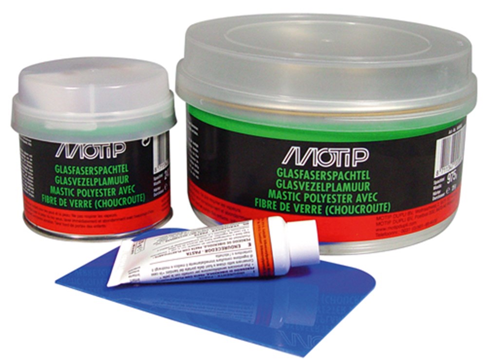 2-componenten glasvezel plamuur voor het vullen van gaten in ondergronden van staal, aluminium, hout, beton en polyester. Glasvezel Plamuur heeft een zeer hoge vulkracht en hoge slagvastheid. Glasvezel Plamuur is overspuitbaar met alle verfsystemen en bestand tegen chemicaliën en weersinvloeden. MoTip Glasvezel Plamuur kan aangebracht worden in laagdiktes tot 2 centimeter.