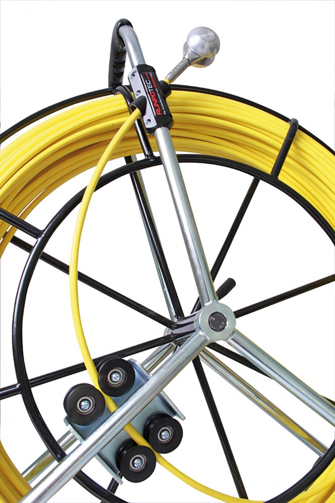 Glasvezelstaaf Ø 9 mm, L: 80 m met stalen haspel en transportwielen
