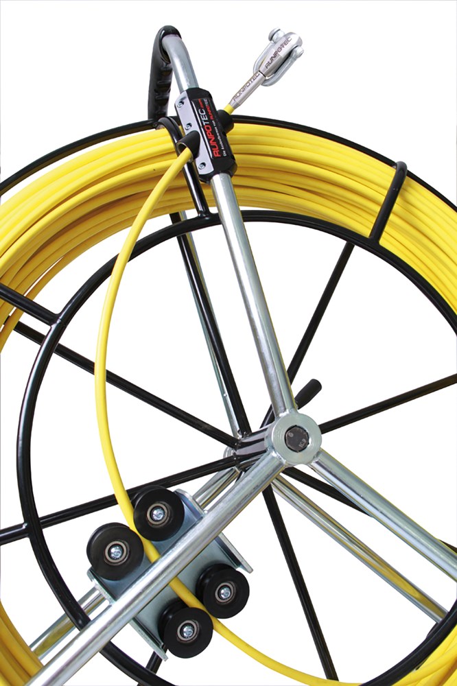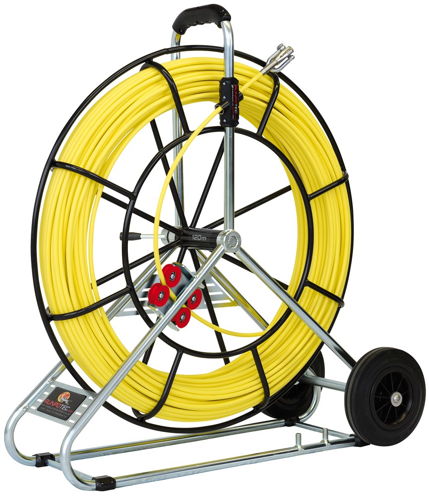 Glasvezelstaaf Ø 9 mm, L: 120 m met stalen haspel en transportwielen