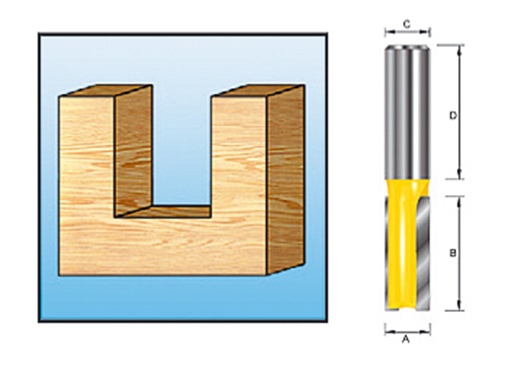 Hardmetalen groeffrees. Geschikt voor het frezen van sponningen en groeven of het frezen van vormen in combinatie met een kopieerring in massief hout, lijmhoudende materialen zoals spaanplaat, MDF en voor kunststof.