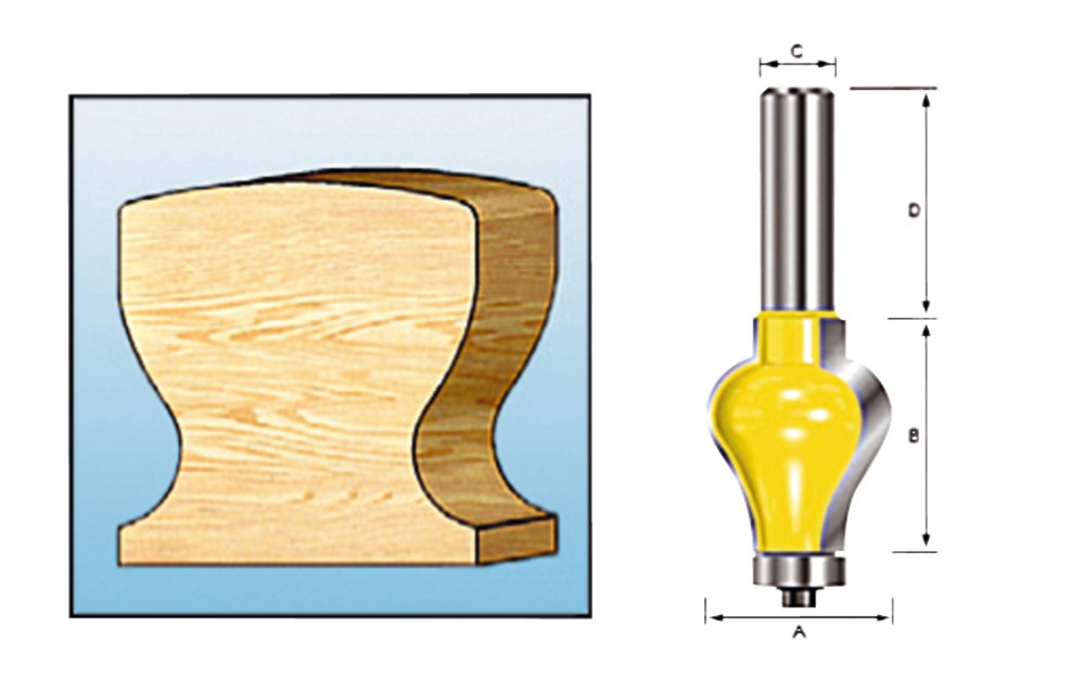 Hardmetalen handgreepprofielfrees met kogellager. Geschikt voor het aanbrengen van handgreepprofielen aan meubels etc. Door verschillende instellingen te gebruiken kunnen variaties in profielen worden gerealiseerd. Passend op Makita Model: M3600, RP1800FX, RP2300FCX, RP2300FCX2