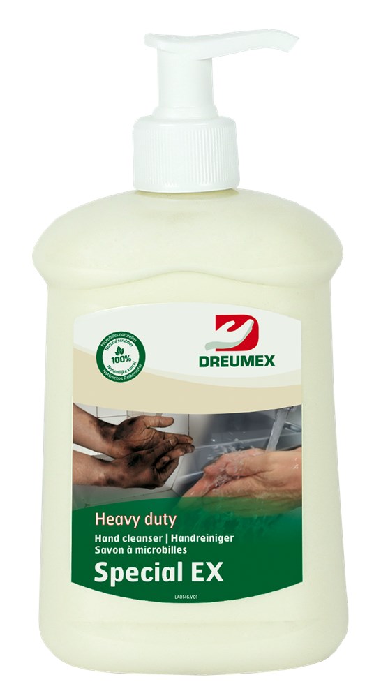 Deze oplosmiddelvrije handreinigingspasta van Dreumex is speciaal gemaakt voor vuile handen in de middelzware tot zware industrie. De pasta is ontwikkelt om vervuiling zoals smeermiddelen, diesel, remvloeistof, cement en roest te verwijderen. De zeep is zeer geschikt voor gebruik in (auto) garages, bouw- en metaalverwerkende industrie. Hoewel deze handreinigingspasta oplosmiddelvrij is, een 100% natuurlijke microkorrel bevat en dermatologisch is getest, is de reinigingskracht zeer krachtig en effectief.