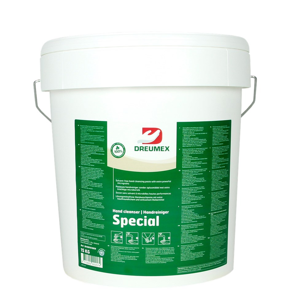 Deze oplosmiddelvrije handreinigingspasta van Dreumex is speciaal gemaakt voor vuile handen in de middelzware tot zware industrie. De pasta is ontwikkelt om vervuiling zoals smeermiddelen, diesel, remvloeistof, cement en roest te verwijderen. De zeep is zeer geschikt voor gebruik in (auto) garages, bouw- en metaalverwerkende industrie. Hoewel deze handreinigingspasta oplosmiddelvrij is, een 100% natuurlijke microkorrel bevat en dermatologisch is getest, is de reinigingskracht zeer krachtig en effectief.