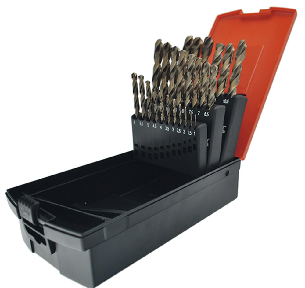 25-delige HSS-Co 5% metaalboren set. Diameters: van 1 tot 13mm.