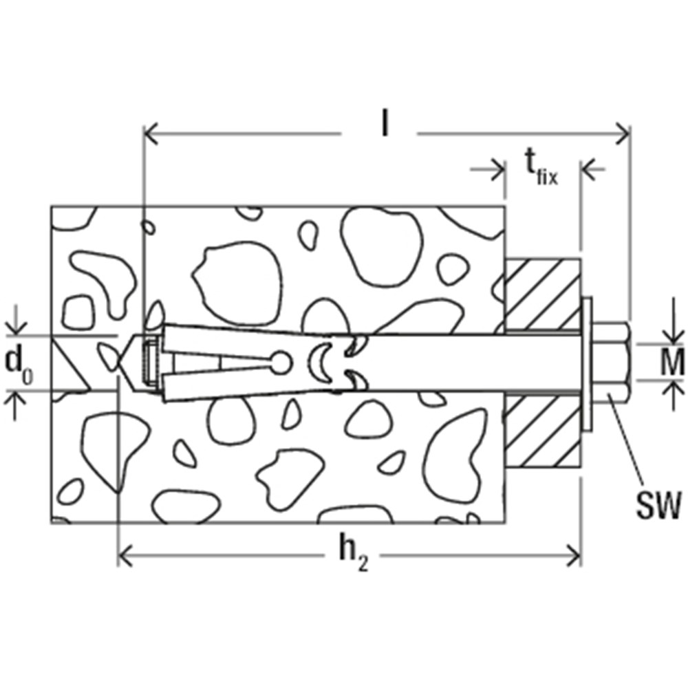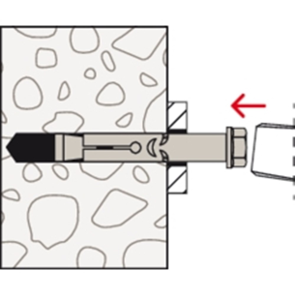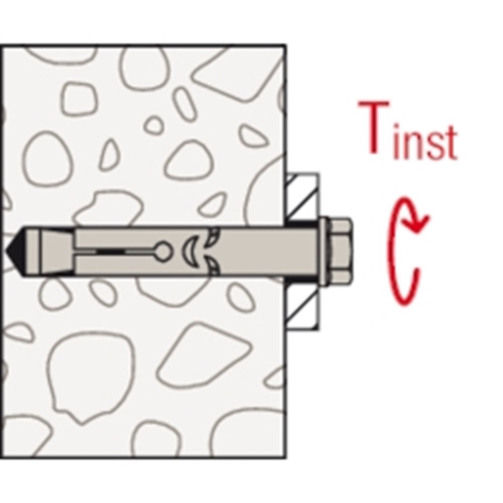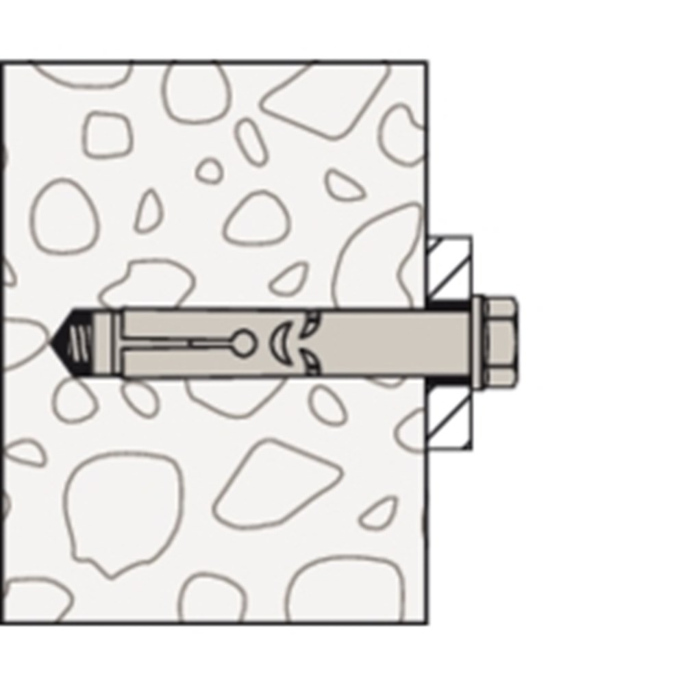 Het fischer Hulsanker FSA-S is een anker van gegalvaniseerd staal met zeskante schroef voor constructieve bevestigingen. Het Hulsanker FSA-S wordt in de tijdbesparende doorsteekmontage geplaatst. Bij het aandraaien wordt de conus in de spreidhuls getrokken en spant deze tegen de wand van het boorgat. De ponsgaten nemen de aandraaislip net als een kreukelzone op. Zo wordt het montagestuk tegen de verankeringsondergrond getrokken. Het fischer Hulsanker FSA-S is ideaal voor de bevestiging van niet-veiligheidsrelevante bevestigingen zoals van consoles, leuningen of kabelgoten in ongescheurd beton.