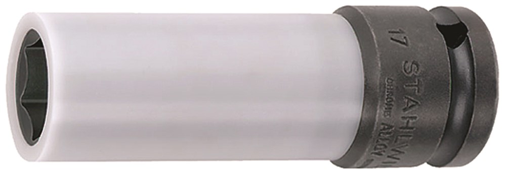 1/2" binnenvierkant-aansluiting, met kunststoffen huls, voor wielmoeren. Beschermt de kwetsbare lichtmetalen velgen, wielmoeren en -bouten d.m.v. overstekende kunststoffen huls.