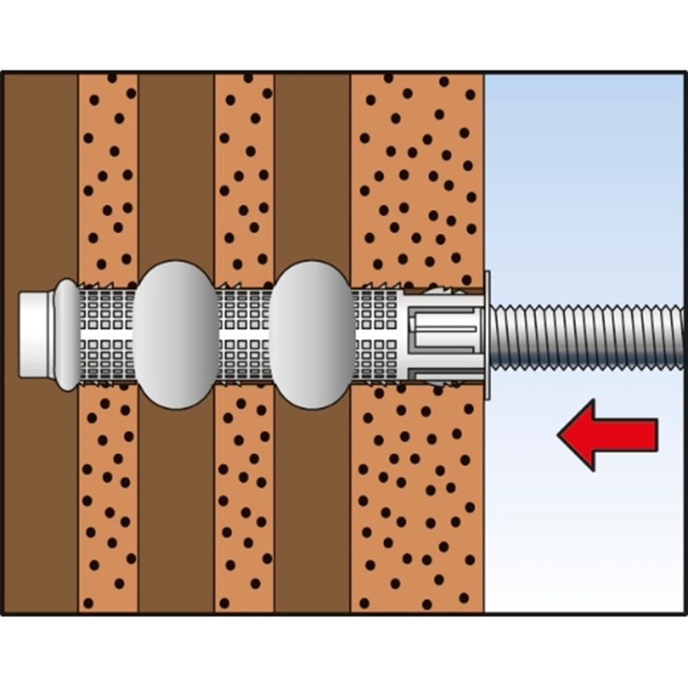 De fischer Injectiehuls FIS H K kunststof is de systeemcomponent bij uitstek voor het gebruik met de fischer Injectiemortel in metselwerk van geperforeerde baksteen. Daarvoor wordt de injectiehuls in het boorgat gestoken en vanaf de bodem van de injectiehuls met mortel gevuld. Bij het plaatsen van de ankerstang of het inslaganker met binnendraad wordt de mortel door de roosterstructuur gedrukt en zich passend met de geperforeerde baksteen verbindt. Daardoor wordt de belasting overgedragen aan het bouwmateriaal. Met behulp van de injectiehuls kunnen ook niet-dragende lagen worden overbrugd.