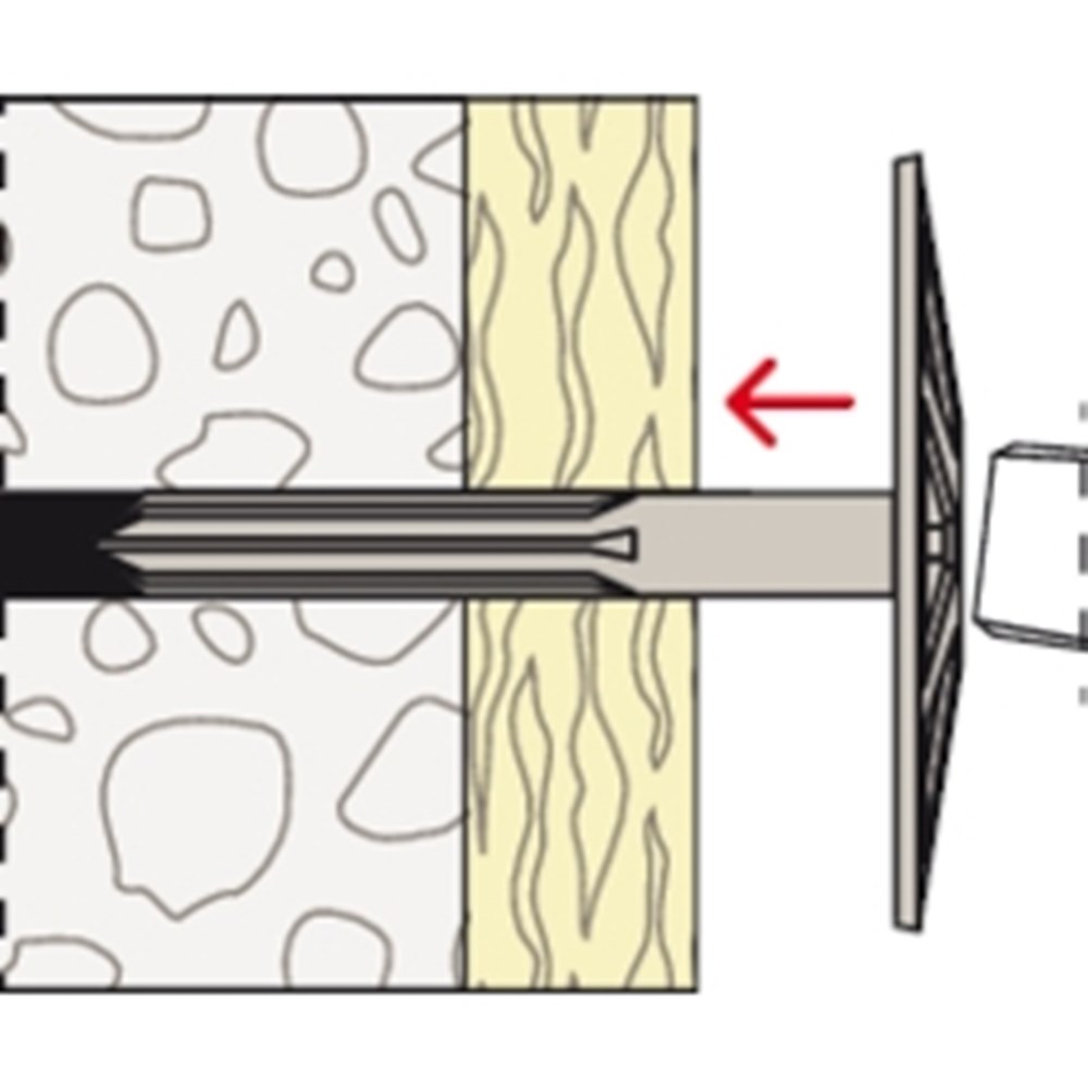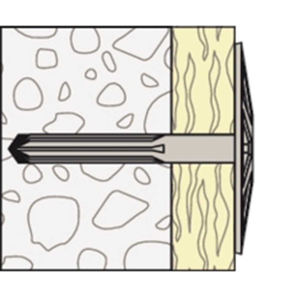 De fischer Isolatieplug DHK is een efficiënte kunststof isolatieplug voor isolatieplaten met hoge drukbestendigheid. De DHK wordt in de doorsteekmontage met de hamer ingetikt. Bij het intikken spannen de ribben in het boorgat en de DHK wordt optimaal tegen de wand geperst. De fischer Isolatieplug DHK is geschikt om isolatieplaten in massieve en geperforeerde baksteen, beton en cellenbeton te verankeren.