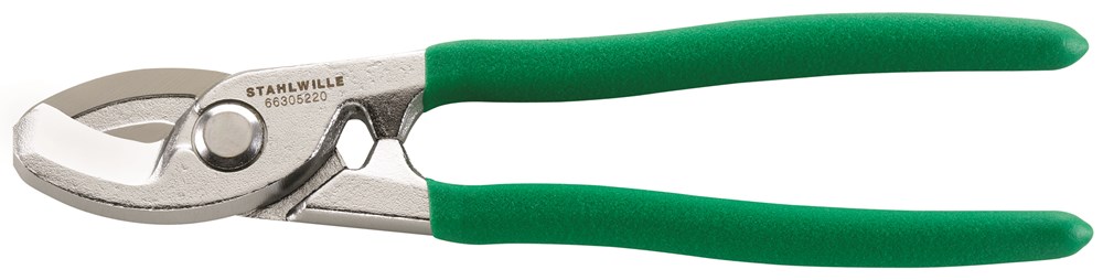 Voor koper- en aluminiumkabel, lichte en zuivere snede met éénhand-bediening, speciale vorm van de snijkanten voorkomt drukplaatsen en gerafelde uiteinden, schroefscharnier nastelbaar, met klembeveiliging, niet voor staaldraad en staalkabel geschikt.