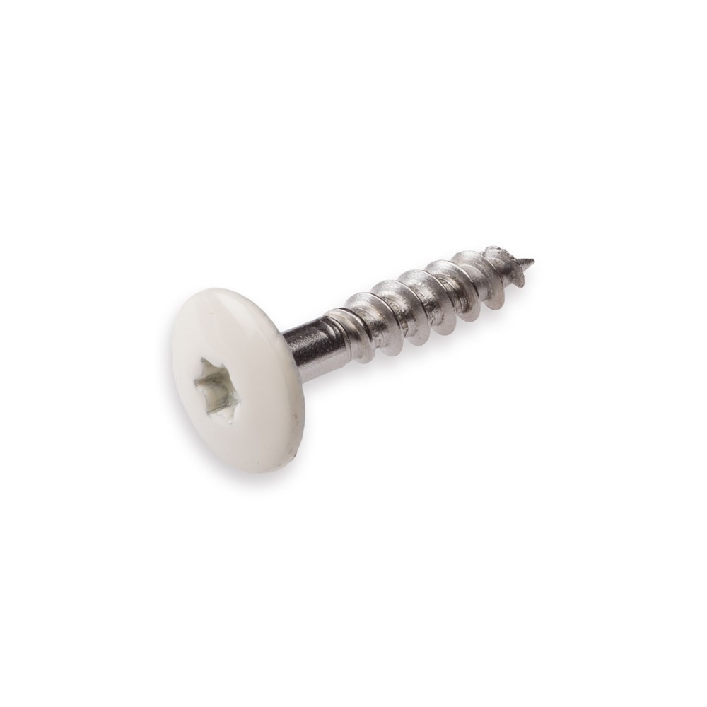 Kleurkopschroeven zijn speciale gevel montageschroeven voor het bevestigen van Trespa® HPL platen. Kleurkopschroeven zijn leverbaar in verschillende RAL-kleuren. Door de grote kop hebben kleurkopschroeven een groot klembereik. De schroeven zijn gemaakt van RVS A2 en hebben een TX-20 aandrijving. Montagevoorschrift; 8,0 mm voorboren en gebruik altijd RVS-bits om contact-corrosie in de schroefkop te voorkomen.