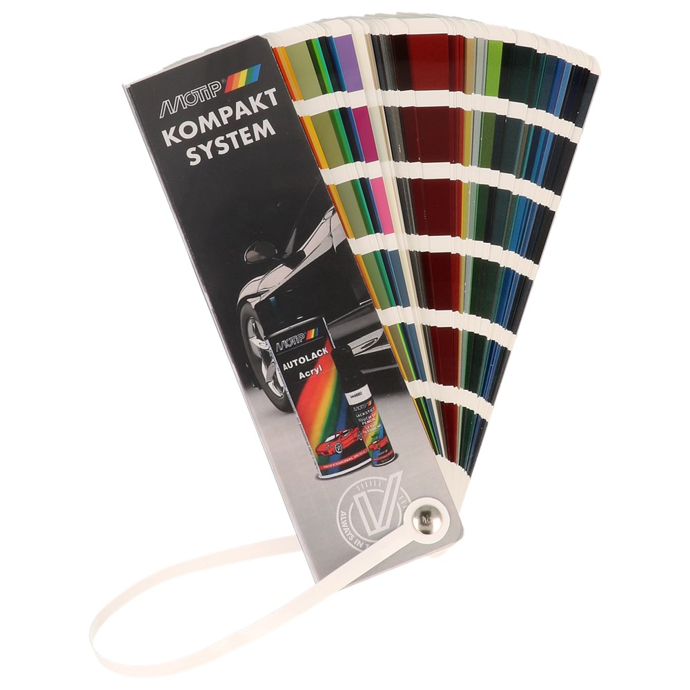 Kleurenwaaier voor het assortiment MoTip Kompakt autoreparatielakken.