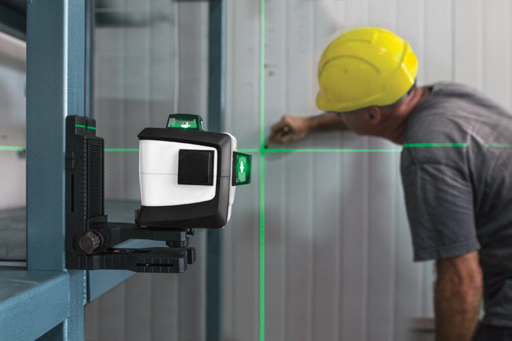 360° kruislijnlaser "PROLASER 3D ALL-LINES GREEN" met 1 horizontale en 2 verticale laserlijnen