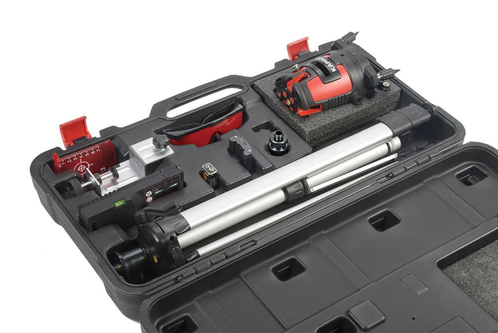 SET: kruislijnlaser "PROLASER ALL-LINES" met 1 horizontale en 4 verticale laserlijnen en een loodpunt