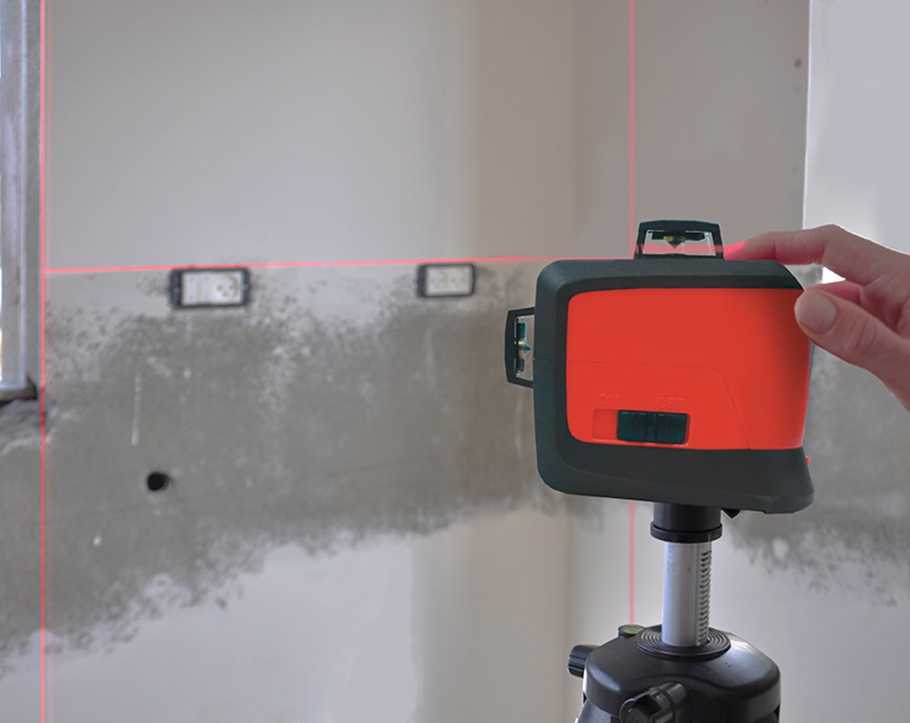 360° kruislijnlaser "PROLASER 3D ALL-LINES RED" met 1 horizontale en 2 verticale laserlijnen