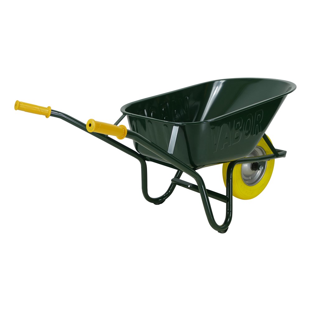 Extra versterkte gelaste KX10LL-kruiwagen van VABOR. Een echte krachtpatser voor alle klussen op de bouwplaats. Geschikt voor de zwaarste bouwmaterialen, stenen, tegels, etc.
