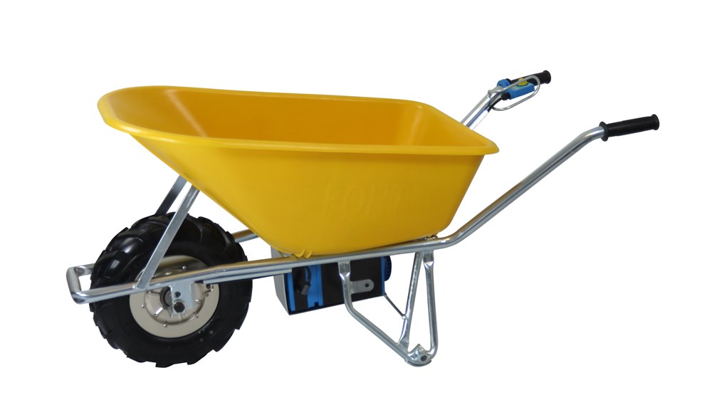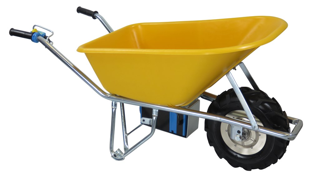 De E-PowerBarrow Heavy Duty pro G&L is een elektrische kruiwagen met een motor in het wiel. De 100 liter kunststof bak is geschikt voor tuin en bouw. De kruiwagen kan optioneel worden uitgerust met extra ondersteunende wielen.